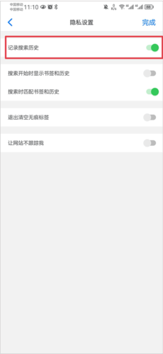 2、然后将记录搜索历史功能关闭即可