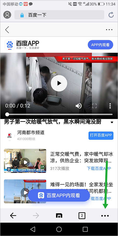 2、在观看视频时点击视频播放窗口右下角的三个点的小图标(下图绿色箭头所指区域)
