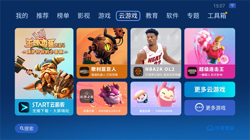 沙发管家平台上基本包含了目前最适合在电视设备上运行的电视直播、视频播放、电视游戏等各类应用,对软件支持电视遥控或游戏手柄操作都有清晰标注。