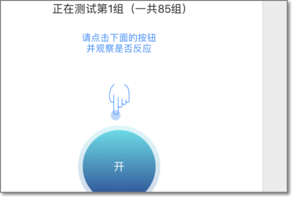 7、选择完成后,就进入*重要的一步了。这里需要让app来识别出想要控制的家电型号。点击屏幕中的开/关/加/减等按钮,测试界面,测试成功即可。