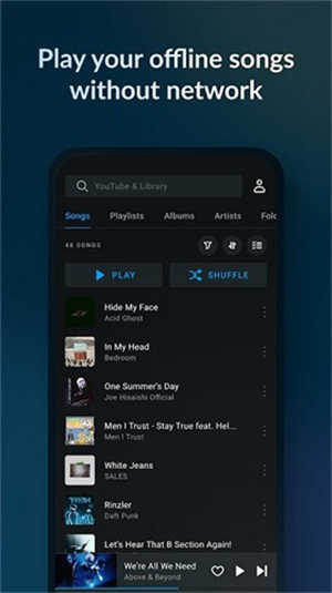 ①当我们手机本地下载了部分音乐之后,进入到Lark Player app的音乐板块中是会自动读取到的,所以这个时候大家只需要选择自己下载的音乐播放即可;