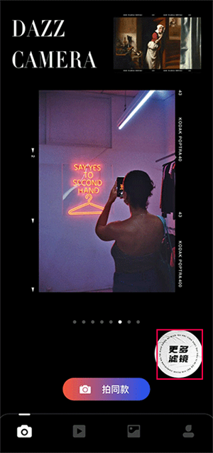 1、首先打开dazz相机安卓最新版,点击更多滤镜;