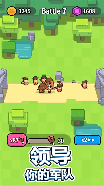 3、战斗过程中,获取肉类资源后便能召唤原始人,借助他们发动战争。