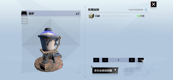 有了图纸就能自己动手打造熔炉了,而制作熔炉需要收集十个石材,材料充足的话,就可以直接去组装台来制作。而手上没有石材的话,其实也很容易采集,小伙伴们在地图上只要找到大石块,就能得到石材了。