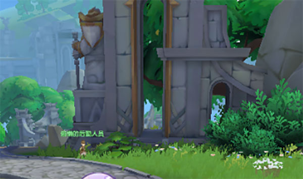 十字路口直行传送到下方,注意右边的灌木丛,走近会触发按键,即可获得宝箱。同一个地方,这有个偷懒的后勤人员在走来走去,和他对话有惊喜。