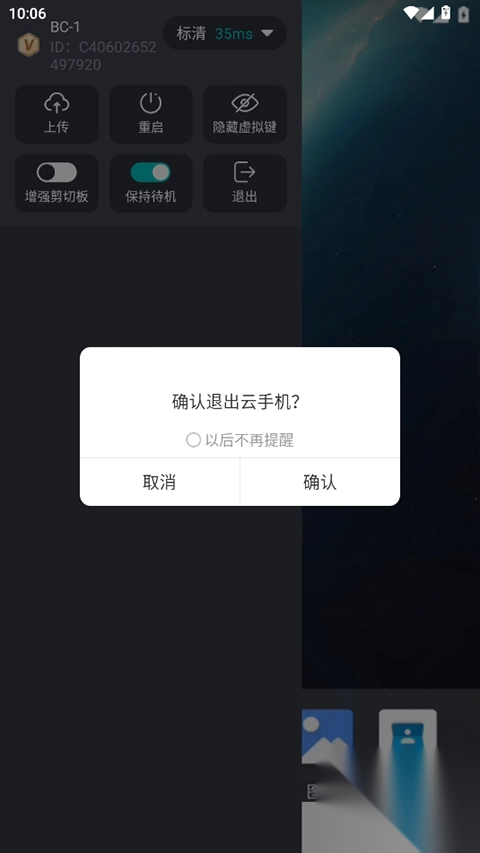 4、退出云手机,24小时游戏在线挂机托管