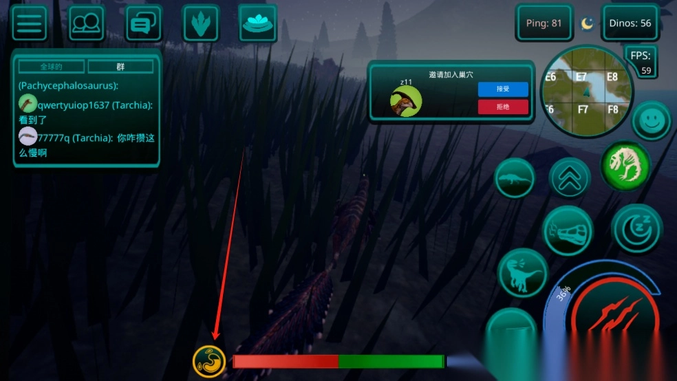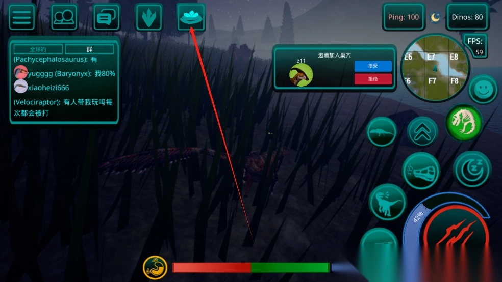 7、你可以建造巢穴,在里面养蛋,然后邀请服务器上的玩家到你的巢穴(家庭),但要做到这一点,你的恐龙必须完全长大并且你的帐户必须达到5级或更高。