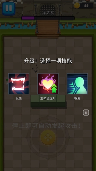 3、每个关卡内设有不同层数,每当成功通过一层,就能选择升级一项技能。