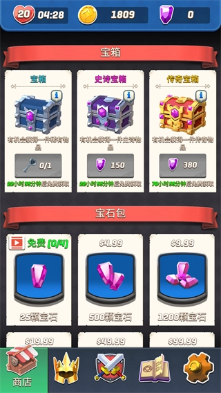 7、于商店中,还能够选购各类宝箱,购买这些宝箱需耗费钻石或者钥匙。