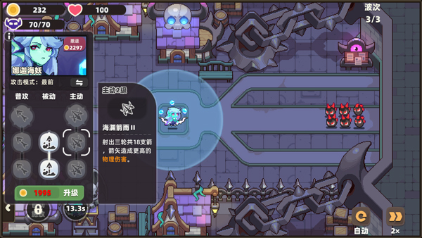 4、进入游戏如图,游戏采用策略塔防玩法,玩家可放置角色来抵御敌人进攻;