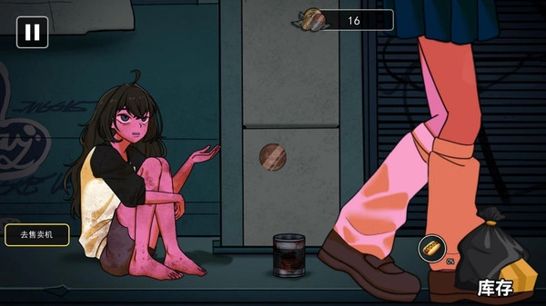 1、控制美少女去乞讨,收集硬币作为购买食物的货币,积累足够数量以满足需求。