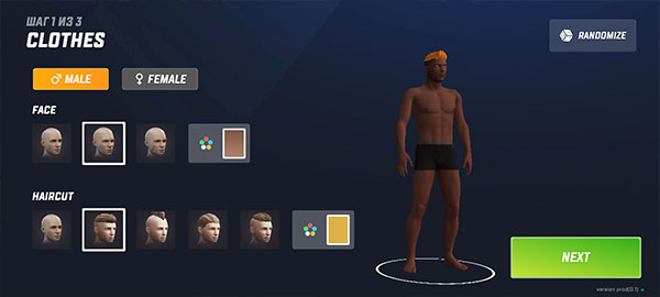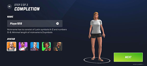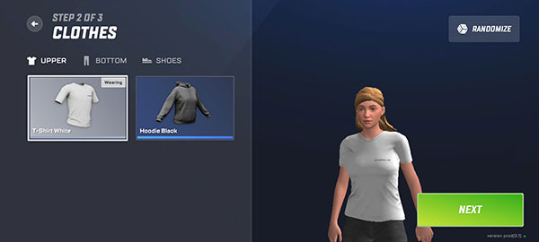 3、给角色选择一套衣服,可以作为初始的免费服装,确定好后点击NEXT进入下一步。