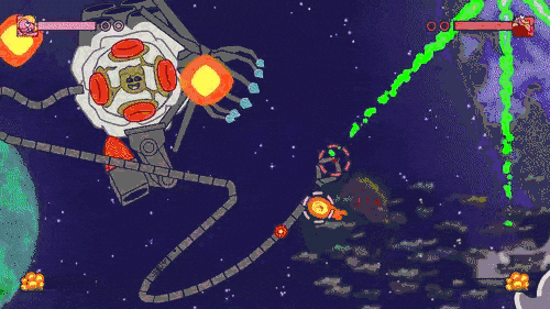 具有多种死亡方式的互动阶段:被猫咬伤,将地球分成两半,或在月球的屁股上爆炸!你可以摧毁一切并将其扔到敌人的脸上。