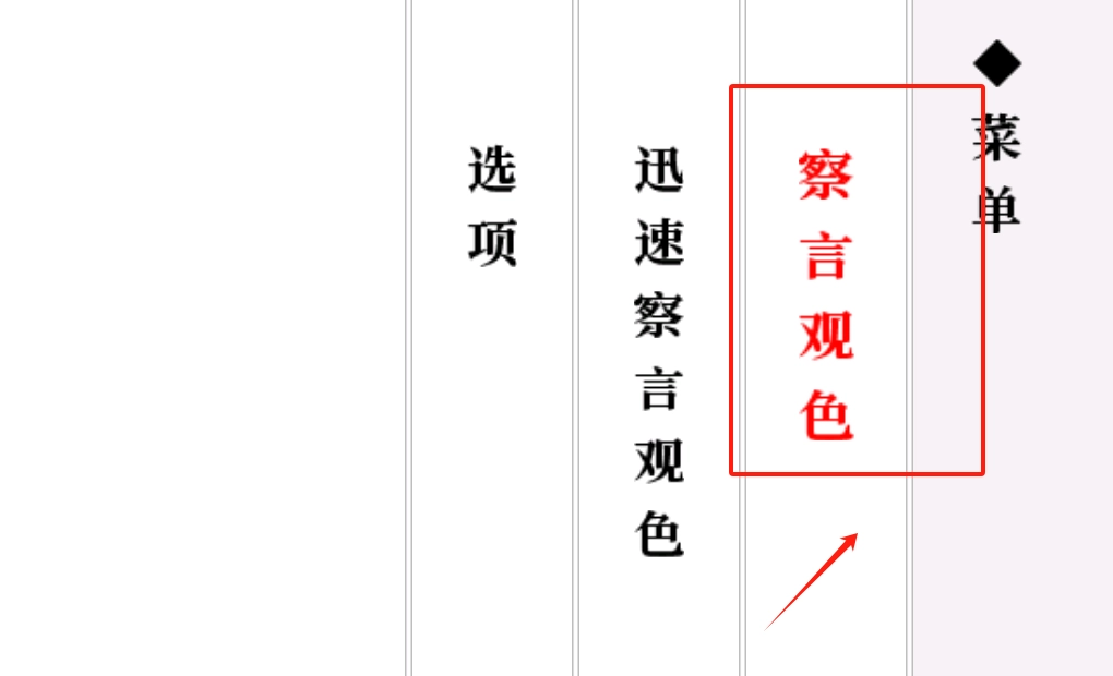 2、点击右侧被红色框住的“察言观色”选项,即可进入游戏主功能页面,页面左侧设有相关菜单。