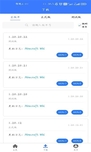 2、打开mc版本库国际基岩最新版应用程序,点击底部的下载按钮。