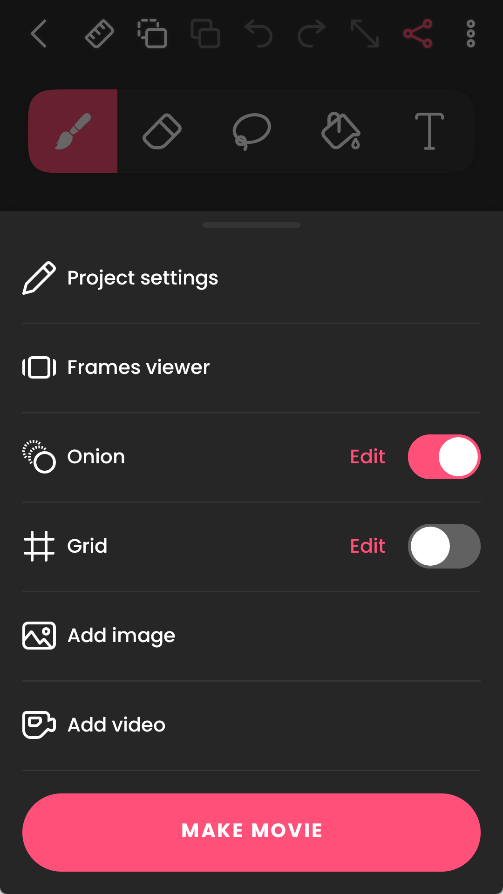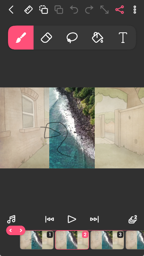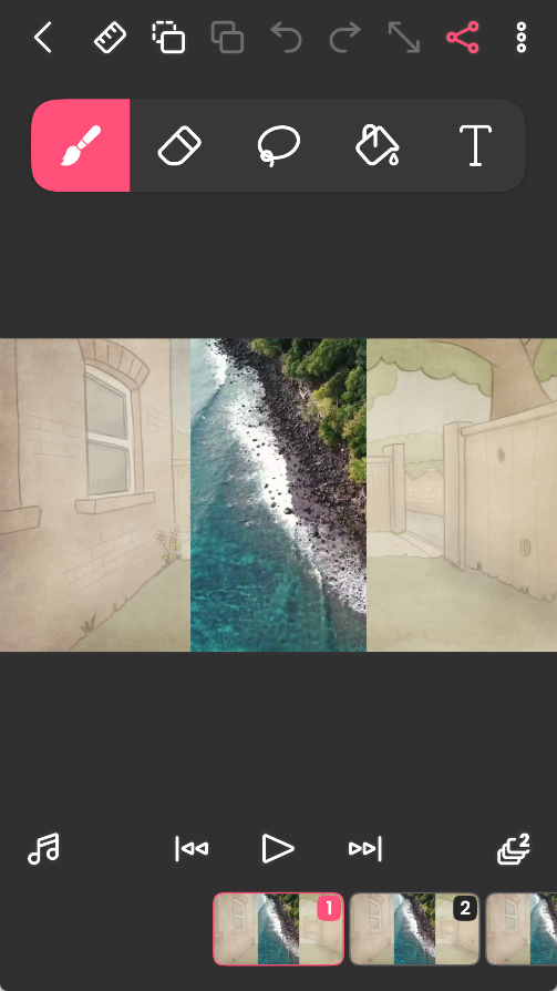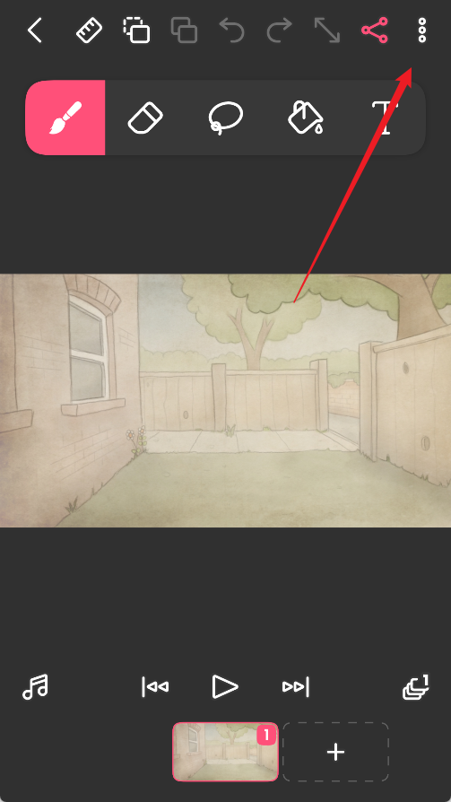 项目建好之后,我们进入了编辑界面,可以看到上方有画笔橡皮擦等工具,下方则是每帧的缩略图。