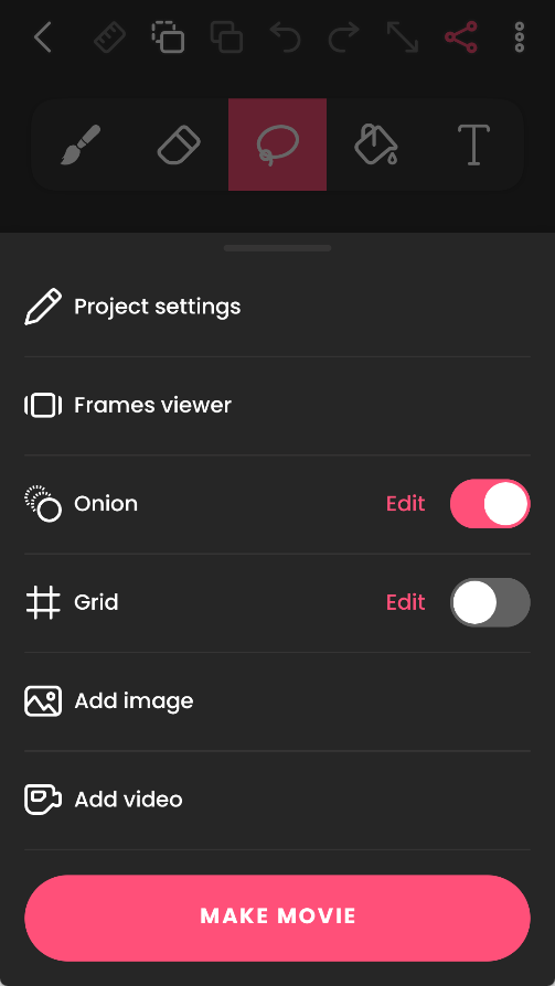 所有的编辑完成之后,我们点右上角的三个点,选择制作电影,就进入了导出选项,导出时可以选择不同的分辨率,还可以选择导出为动图或者png序列,但png序列需要付费功能。