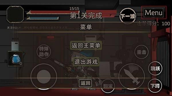 6、左上角生命值归零时游戏结束,点击右上角的“Menu”按钮可以返回主菜单。
