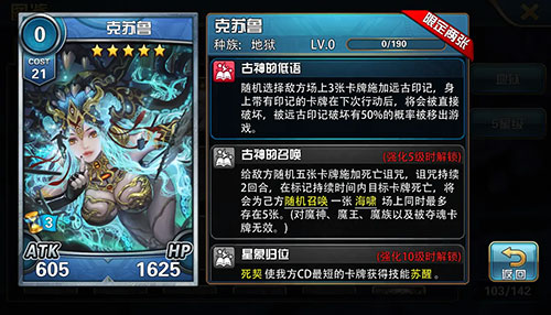 2技能,标准的印记召唤型技能,能和1技能同时起效。抛开海啸70%的全体迷魂强控不谈,由于印记类效果的特殊性,同一时间同个卡牌上相同类型的印记只能生效一个。也就是说被海啸打上印记的卡牌克苏鲁无法用更高级的印记去覆盖,等同于会被强行拉低收益。此外,海啸的3技能上限虽高,但也很容易受到限制,比如普及的小栗子。