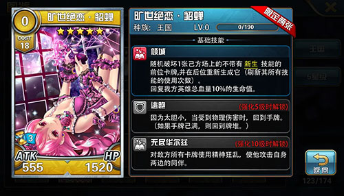 物理和阻碍的另类组合,画虎不成反类犬的实际表现。虽然有看似很强势的阻碍能力,但触发技能联动的前提却是物理攻击杀死对方卡牌。且不论能不能在现今大环境下用物理攻击的方式抢到人头,自身能不能在场上撑到技能全部触发完毕还是个大问题。觉醒阻碍2虽也是个有强度的技能,但很可惜地不但无法和自身很好地联动还难以触发,白白浪费了技能的强度。