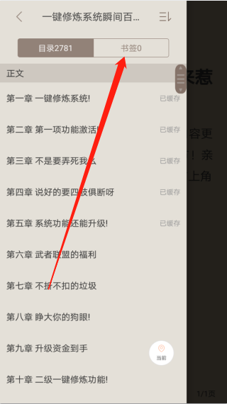 8、我们还能点击上方的书签,在这里能够快速的寻找到这篇小说中我们添加的书签。