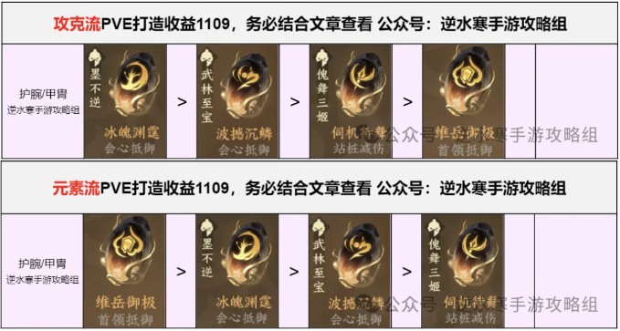 衣服护腕方面,防具带来的进攻收益有限,可以先追求鞋子部位的打造。已经有鞋子打造的话,元素流可以追求一下非首领打造维岳御极,攻克流有啥用啥。