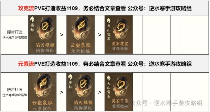 总体而言,新赛季非首领打造的收益颇为可观。若在上赛季没有进行金首领打造,那么小伙伴们可着重优先打造鞋子部位。在非首领打造方面,对于攻克流而言,崩摧撼岳是首选;而蹈武在庭增加元素攻击和会心伤害,其收益也不错。元素流的话,蹈武在庭是首选,在元素忽视未溢出的情形下,回崖踏嶂的收益极高;至于增加破防的崩摧撼岳和千载锋鸣,对元素流的收益相对较低,尽量不要选择。