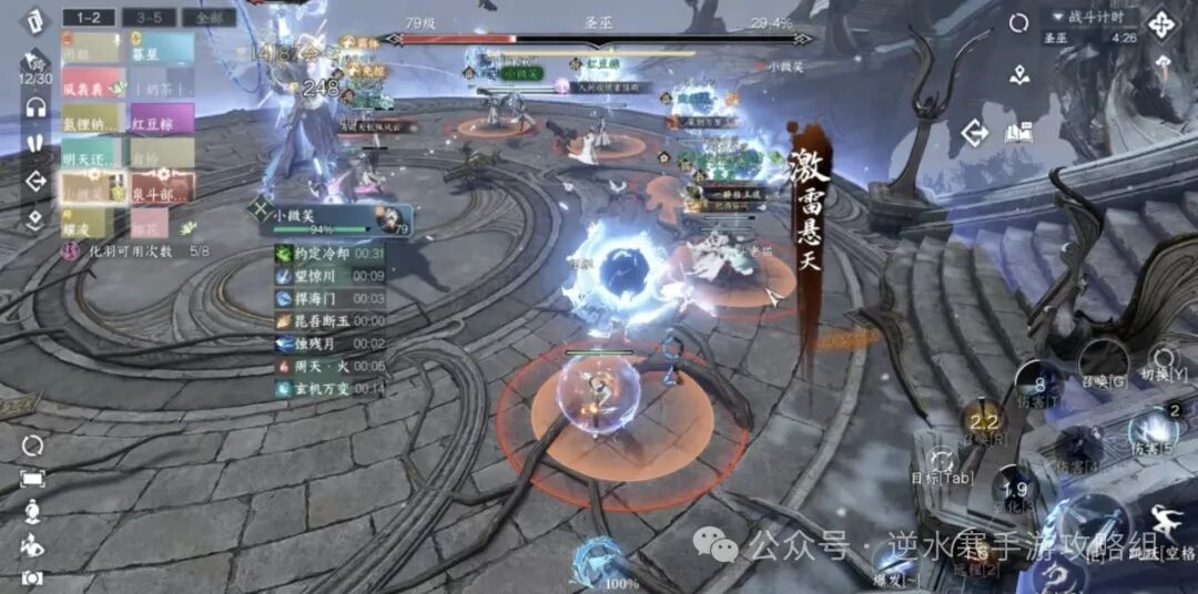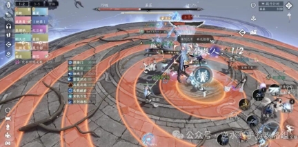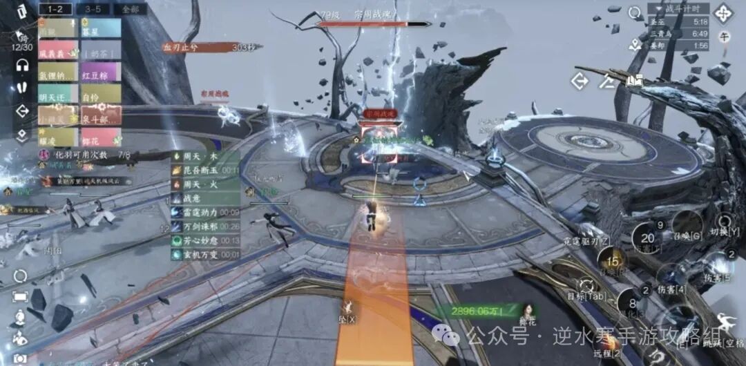 机制1:冥兆雷核·引,BOSS会在面前凝聚雷球。AOE打散即可,打散会出现向外扩散的雷圈,可以跳跃躲避,伤害一般。另外战斗中还会出现向内收缩的雷圈也可以用跳跃或减伤的躲避。