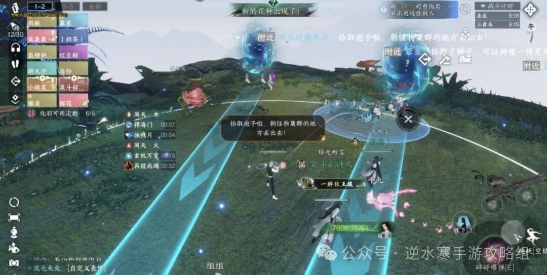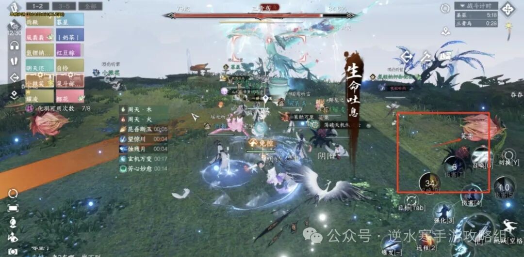 机制3:三青鸟化为人形,进行塔防游戏。奶妈围着BOSS奶,其他人清理小怪即可。奶妈捡复苏花种子增加治疗,孢子类似于炸弹。出现玄幽蛊师第一时间击败,会影响治疗。