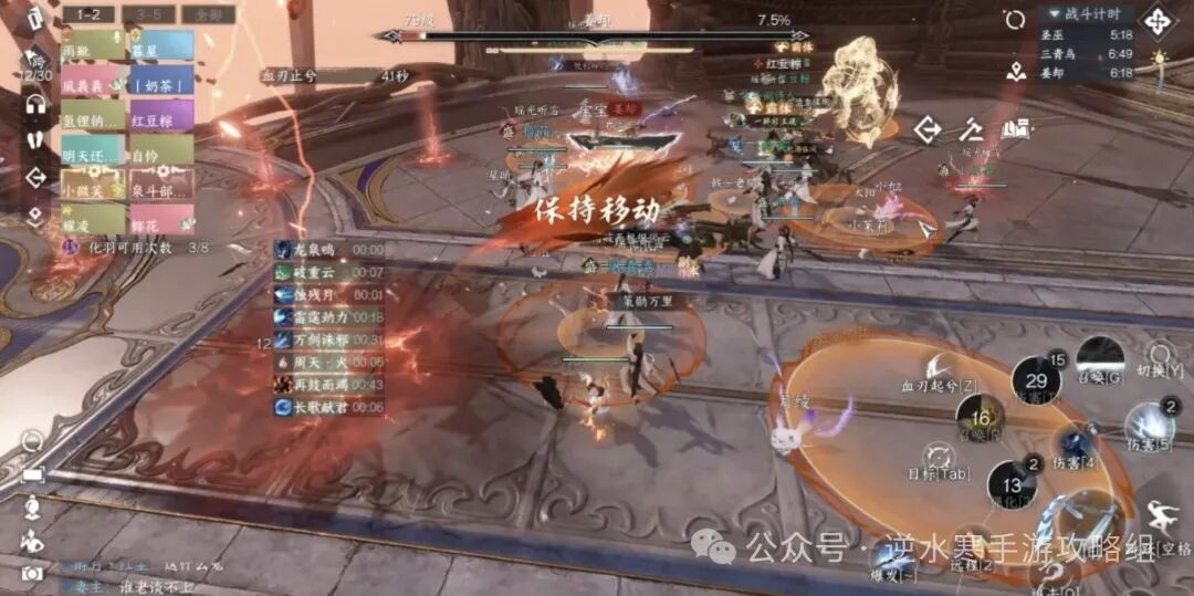 机制4:殷雷动地,多重环形伤害。玩家一边躲避红圈一边点击中间的救人即可。