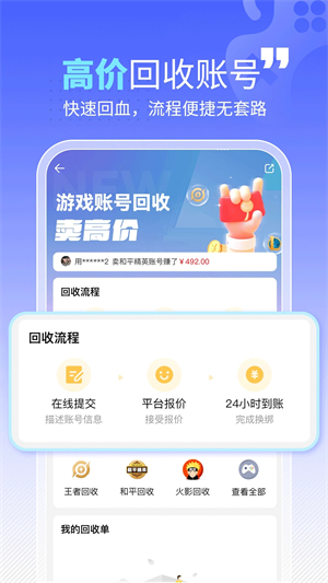 戏仔平台具备一键发布商品功能,能为时间有限的玩家提供智能账号售卖发布服务。此外,该软件还设有高价回收账号业务,若玩家购买账号后,觉得游戏体验未达预期,便可利用此高价回收功能,快速完成账号回收,减少中间差价损失。