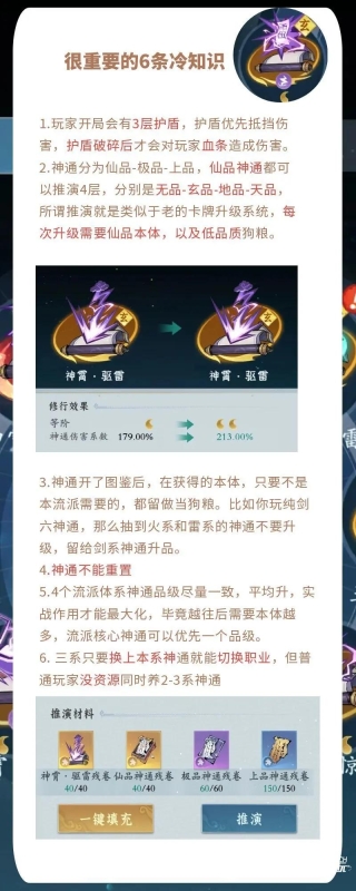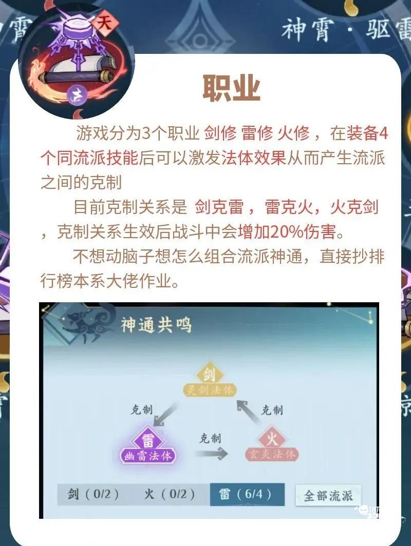 要点5:事先考虑好自己想要游玩的派系。其中,火系克制剑系,剑系克制雷系,而雷系又克制火系。此选择仅对主线以及系统赠送的神通产生影响。举例来说,要是你挑选了剑系,那么系统任务就都会赠送剑系技能。实际上,真正判定你属于哪个派系,关键还是看你装配的技能。每个人能够装配6个技能,当同一派系的技能装备数量达到4个时,便可激活对应的派系。当然,大多数人选择了哪个派系,便会专注玩那个派系,毕竟系统赠送的技能占比颇高。倘若你不知道该怎么选,那我建议你选剑系。要是你非得追问原因,我只能说,我玩火系。