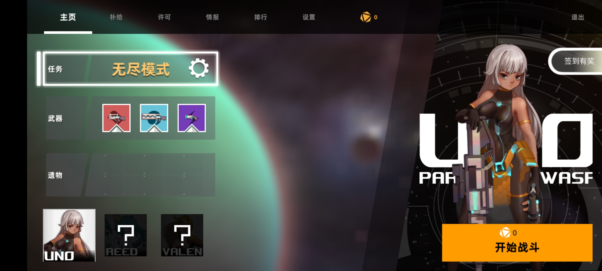 1、进入强袭人形原体手游官方版主界面点击【strat】开始