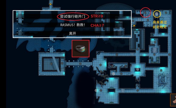 成功收益:获得10点A-exp,并打开左侧囚笼房左上角的门(即直接通过那处的检定)。