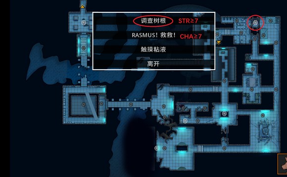 1)雪山机械地下城,囚笼室左上角剧情点,尚未通过树根房间处剧情点的检定时,选择“尝试强行砸开门”。