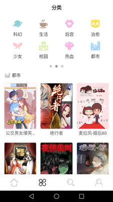 分类包括题材、精选和作者三种方式,个性化推荐满足漫画爱好者的挑剔口味;特有的智能搜索引擎,提供海量关键词搜索指引,不再让你轻易错过任何好漫画。