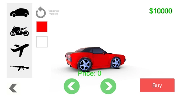 4、点击左上角可以购买各种武器和汽车,大家可以在这里自由选购;