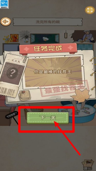 3任务成功完成后会出现任务评价结果,只需点击下一关按钮就能直接进入新的挑战,继续探索。