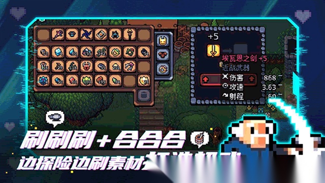 3. 以休闲放松的方式游玩,通过刷宝和合成各种材料碎片,来打造你的最强武器。