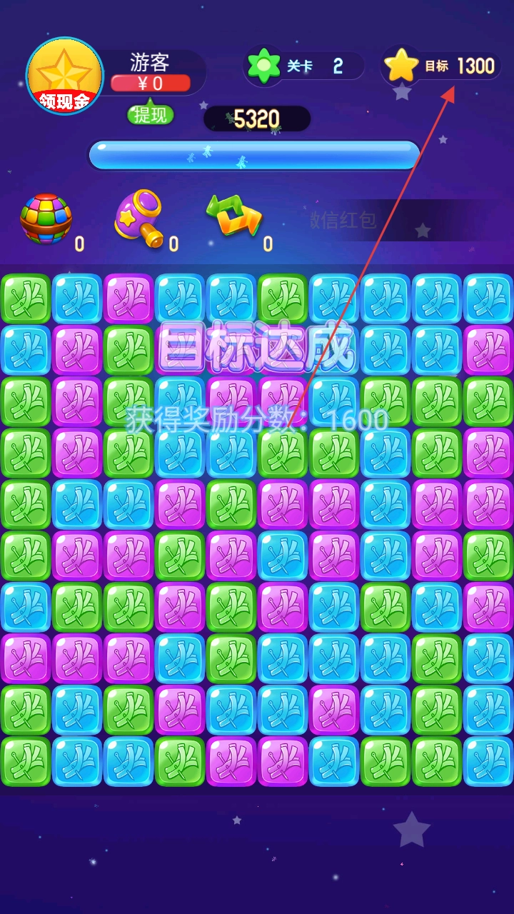 3、注意关卡目标分数,达到该分数后即可进入下一关。可借助道具的力量,挑战更高难度。