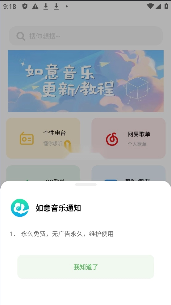 如意音乐,这款音乐软件融合了播放与下载功能,界面简洁直观,功能丰富多样。它支持绑定各大音乐平台的账号,能让你便捷地导入歌单。软件内有丰富的排行榜、MV 以及电台资源,播放过程流畅,不会出现卡顿现象。在最新的更新中,更是增添了云盘线路,就算是下架的歌曲,也能轻而易举地找到。