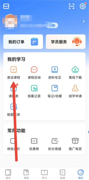 2、点 【我的】 ,在我的学习内选择 【激活课程】