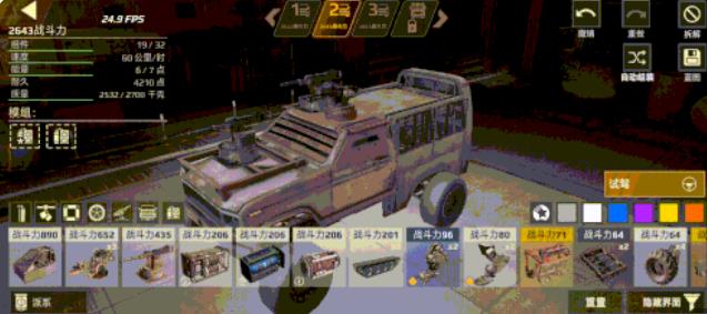 “自动组装”按钮能够利用仓库中已有的部件,组装一台随机战车。