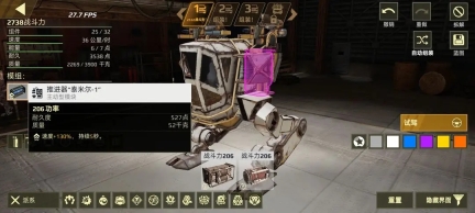 此外,在这个区域内还会依次显示战车上搭载的主动型模块和被动型模块。如果这些模块未装配,则会在下方的部件选择区进行快速筛选。而如果这些模块已装配,则会显示该模块的信息,并将它在界面上高亮显示。