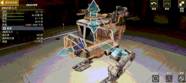 移动端对于部件的组装有能够快速拖动的方便之处,但是也存在着难以精确放置的缺陷。各位工程师可以轻触战车上已装配的部件,根据右下方所选择的转向模式或是移动模式,从而显示半透明的按钮帮助部件进行微调。