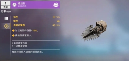 在《创世战车》移动版中,几乎每一款近战武器都有其独特的效果。如下图所示的近战武器“螺旋钻”,它不仅能对结构部件造成额外的伤害,而且在接触敌方战车时,还能产生减速效果。