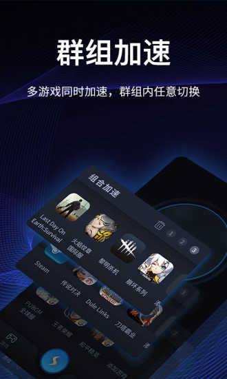 2、业界独有的群组游戏加速功能,支持多款游戏自由切换,无需额外操作。