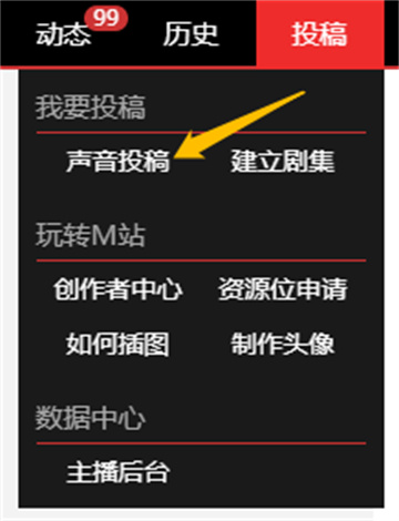 首先,进入猫耳的主页,然后点击声音投稿选项。