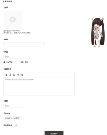 PS:目前猫耳仅支持通过网页方式进行投稿