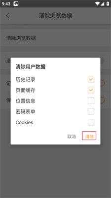 5、选择需要清除的用户数据,如历史记录、页面缓存等,然后将右下角的【清除】点一下就行了。